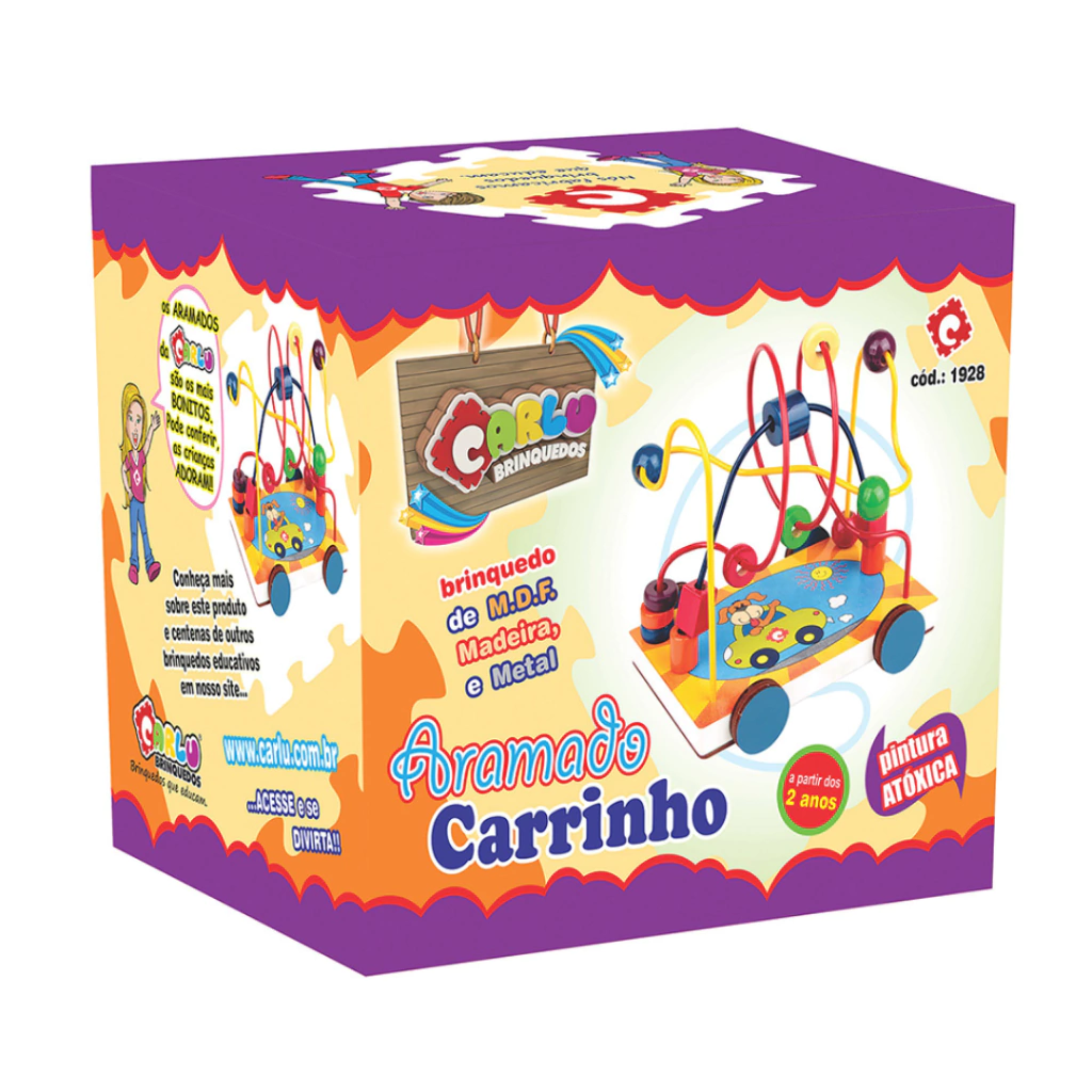 O Aramado Carrinho é um brinquedo divertido que chama a atenção de crianças de várias faixas etárias. Composto por 3 circuitos e 15 peças, a criança estimula a coordenação visomotora e a percepção visual através das cores e formas. Uma fofura!