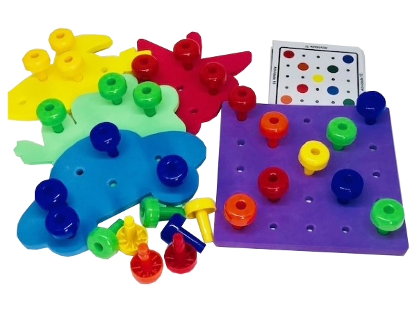 A Placa de Pregos Coloridos tem o objetivo de trabalhar coordenação mão-olho, destreza manual, discriminação de cor, sequências e quantidades. O brinquedo acompanha 1 kit com 5 placas de EVA, sendo 4 com 7 furos em formatos de uva, carro, foguete e sapo, 1 placa quadrada com 25 furos, 1 livreto com 32 atividades de sequências e 5 de formas geométricas e 33 pregos coloridos. Um recurso incrível!