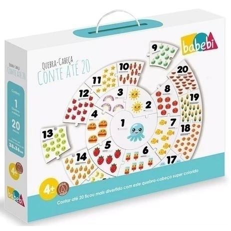 Quantos pontinhos temos aqui? Um, dois, três, quatro... Aprenda a contar até 20 é um divertido quebra-cabeça circular com figuras coloridas e atrativas para os pequenos aprenderem a contar brincando.